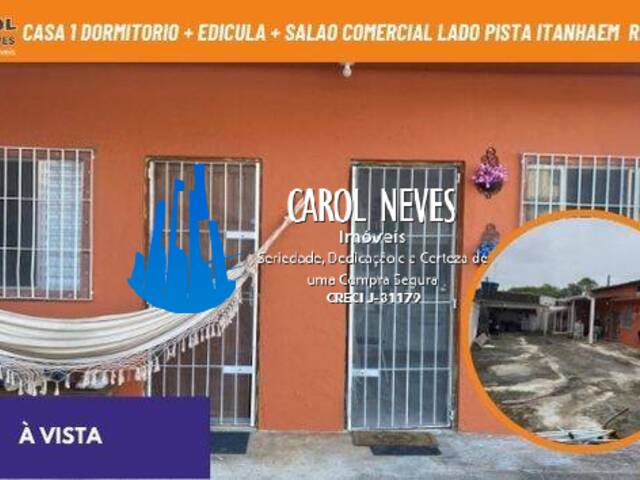 CASA 1 DORMITORIO + EDICULA + SALAO COMERCIAL LADO PISTA A VISTA ITANHAEM
