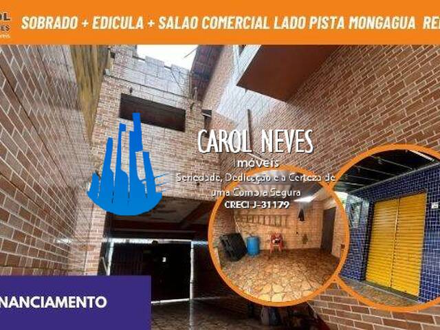 SOBRADO + EDICULA + SALAO COMERCIAL LADO PISTA FINANCIAMENTO MONGAGUA