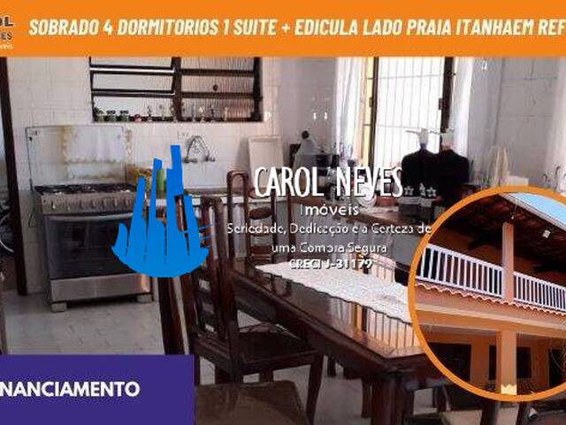 SOBRADO 4 DORMITORIOS 1 SUITE + EDICULA LADO PRAIA FINANCIAMENTO ITANHAEM